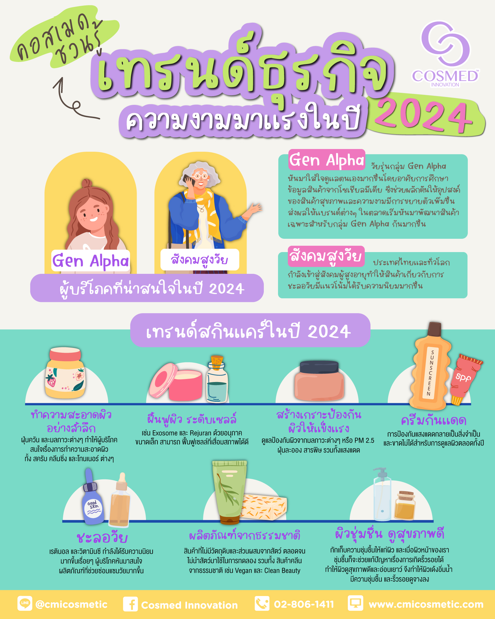 เสริมด้วยปัจจัยที่ทั่วโลกกำลังเข้าสู่สังคมผู้สูงอายุกันมากขึ้น รวมถึงวัยรุ่นกลุ่ม Gen Alpha ที่หันมาใส่ใจดูแลตัวเองกันมากขึ้นโดยอาศัยข้อมูลสินค้าจากโซเชียลมีเดีย