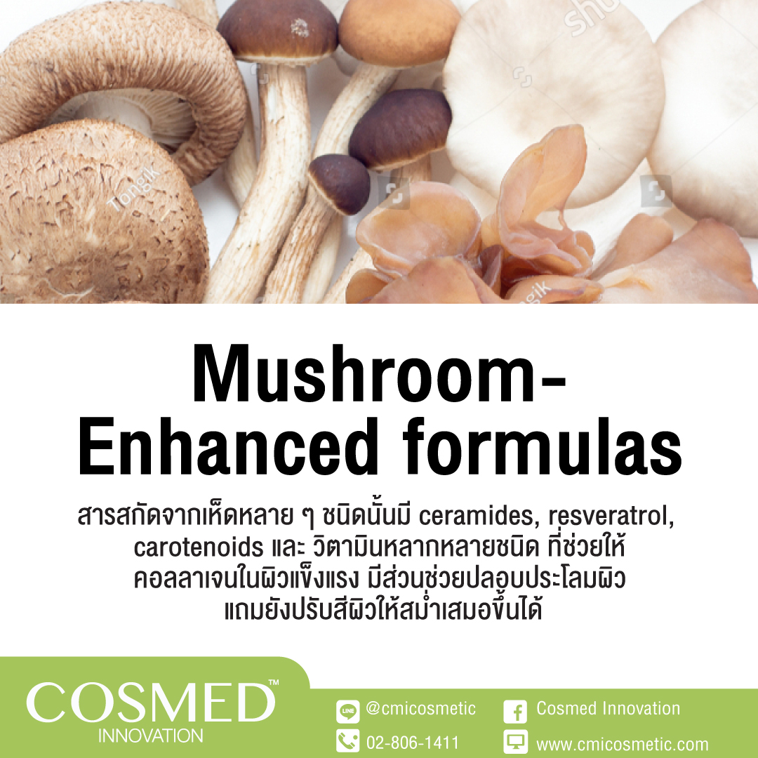 สารสกัดจากเห็ดหลาย ๆ ชนิดนั้นมี ceramides, resveratrol, carotenoids และ วิตามินหลากหลายชนิด ที่ช่วยให้คอลลาเจนในผิวแข็งแรง